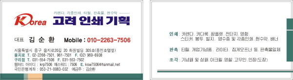 고려인쇄기획 명함